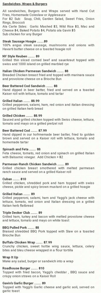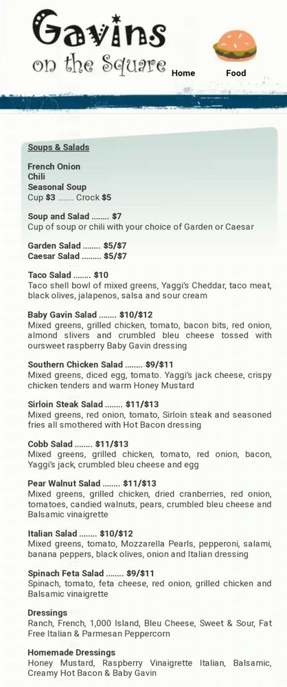 Gavin’s On The Square Menu
